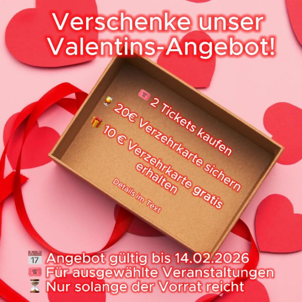 Liebe geht durch die Ohren 🎶 Verschenke gemeinsame Zeit, die in Erinnerung bleibt. 🎟 2 Tickets kaufen🍹 20 € Verzehrkarte sichern🎁 10 € Verzehrkarte gratis erhalten 📅 Angebot gültig bis […]